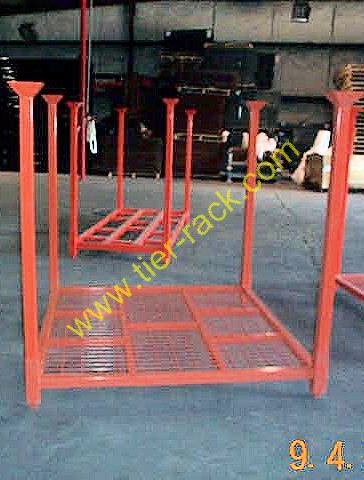 Our center post Tier-Rack® tire stacking frame is a popular alternative for those who appreciate the ease of loading and unloading tires when there are no obstructions on the corners of the stack racks. These tire racks are also the least expensive storage solution for tires available. The frames easily attach to your existing warehouse pallets and will hold loads of 2,000 pounds per pallet when the racks are stacked five high. Tire storage is easy and inexpensive with a tire stacking frame.