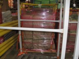 Approximate size of used pallet racking: 48” x 48” x 54”. Pallet stacking frames or Tier Racks clip on to a standard 48 x 48 pallet and allow you to stack them on top of each other going 4 high without crushing your product. Works great for boxed items, rolled goods, palletized product and even a 48x40 pallet load will fit inside this rack. The last picture shows some yellow used pallet racks of the same design just a little taller. You can buy them both together or separate them.