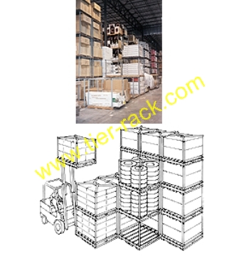 In 1955 a pallet maker in mid Missouri was looking for a way to help his customers maximize the use of their warehouse space. The result was the pallet stacking frame and he named his company Tier-Rack Corporation. Now 57 years later, our original Tier-Rack Pallet Frame is still used widely throughout the world. The idea is a simple but effective way to create a portable stack rack that will let you stack your products 3 to 5 loads high. These stackable pallets or pallet shelving units are great for storing products that are crushable, or do not otherwise readily stack.